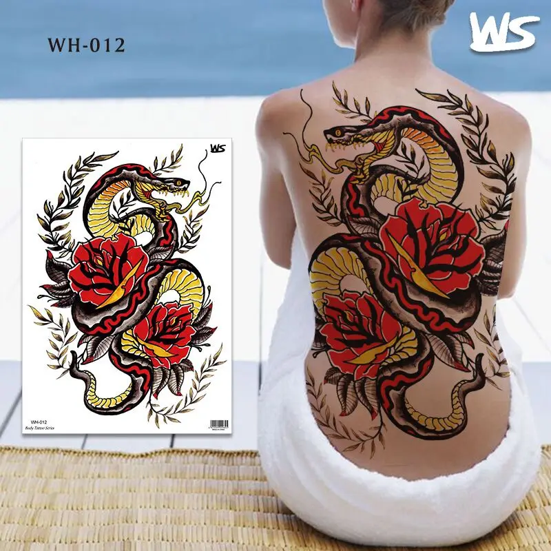 קנו קעקועים ואמנות גוף Adult Tattoo Waterproof Large Full Back Sexy Body Tattoos For Women Men Dragon Temporary Tattoo Snake Tribal Water Tatoo Fake